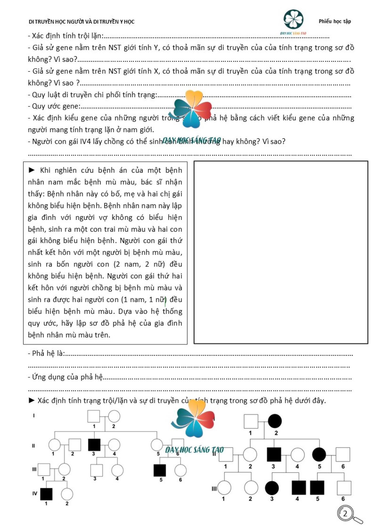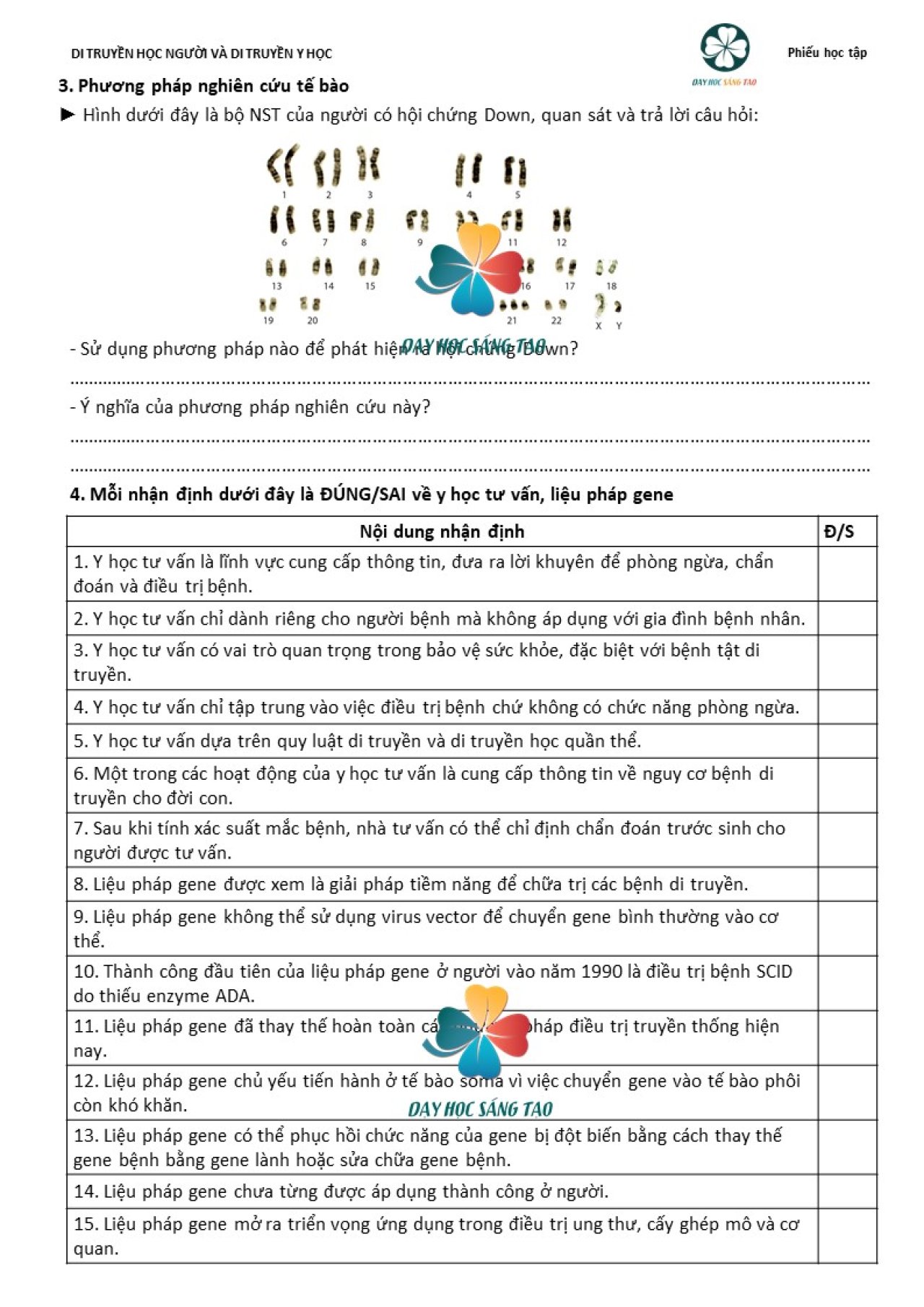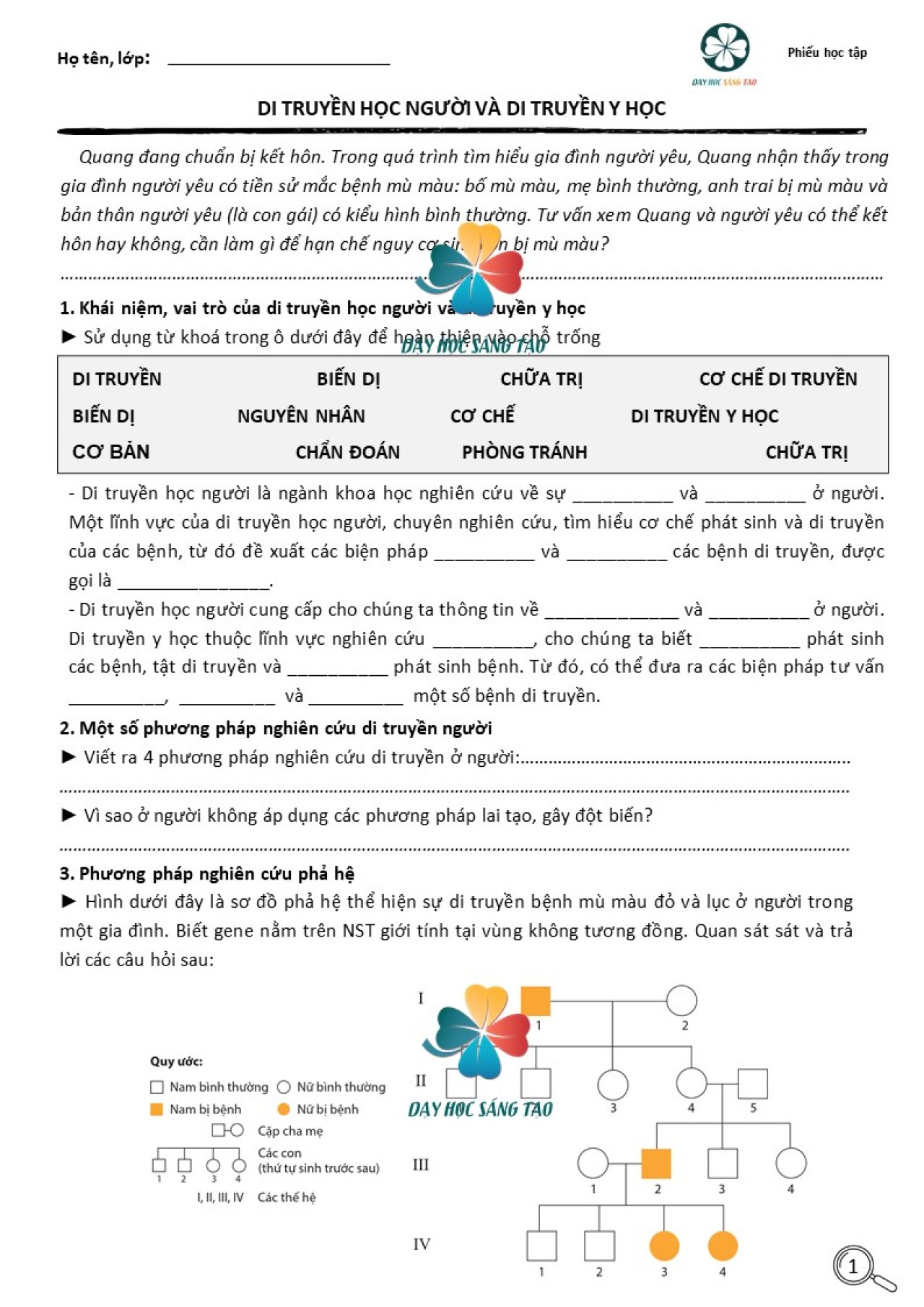 Mời thầy cô tham khảo ý tưởng để học sinh tự học phần Di truyền học người.