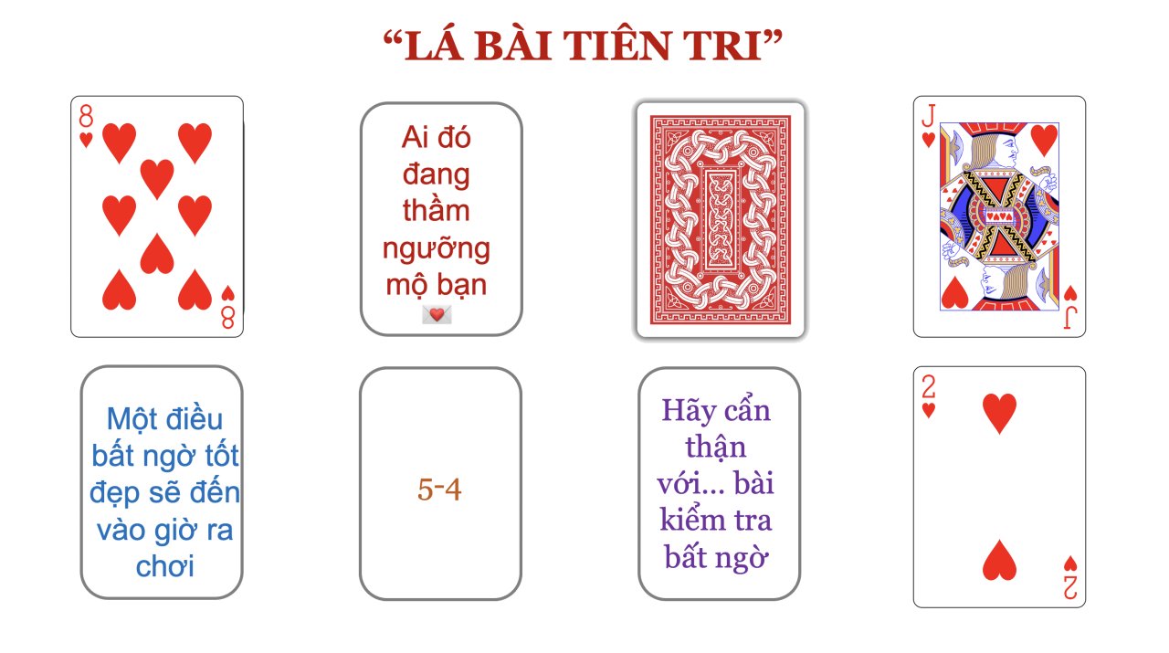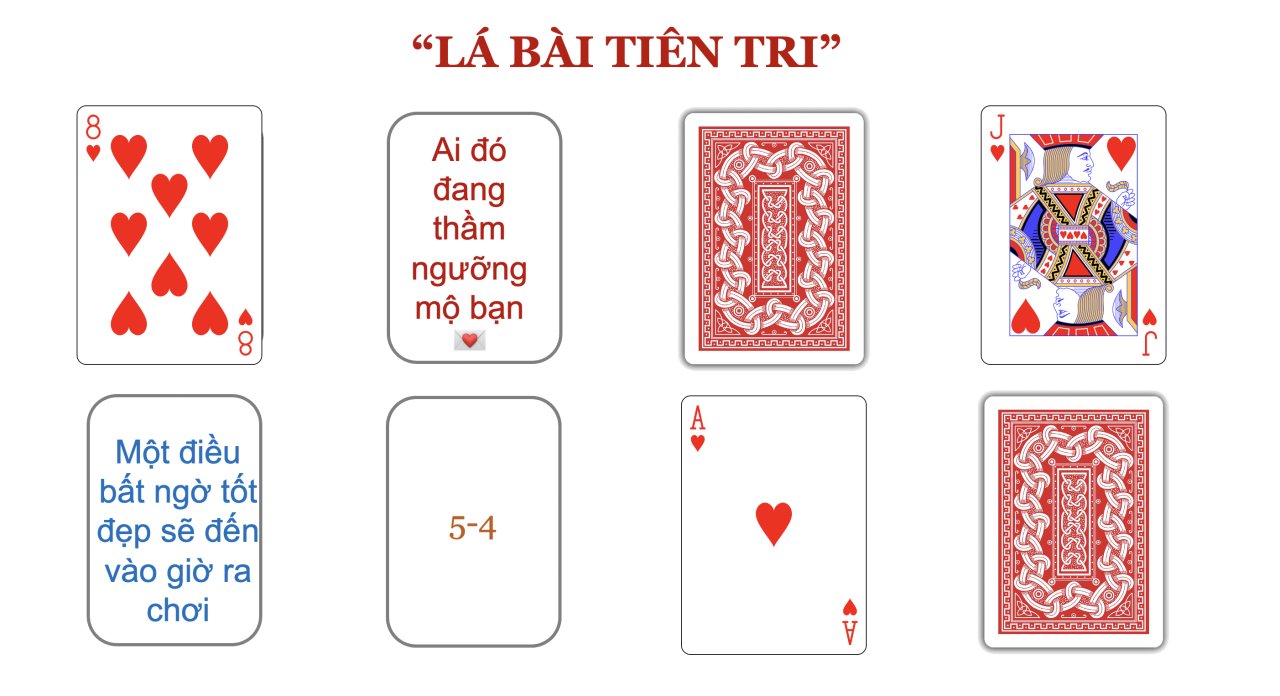 Mỗi lá bài ẩn chứa một câu hỏi bí mật (có thể là bài toán nhanh, câu đố, hoặc câu hỏi kiến thức).
