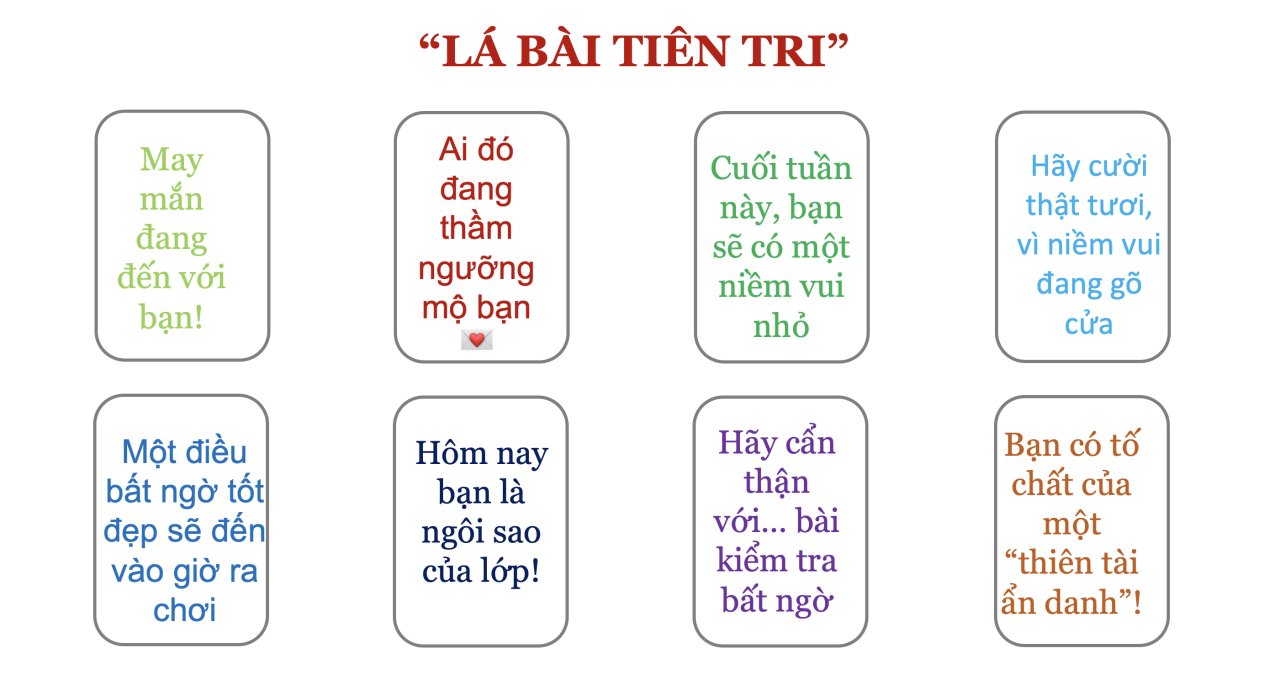 Nhận “lời tiên tri”: Nếu học sinh trả lời đúng, click để mở “lá bài tiên tri” phía dưới.